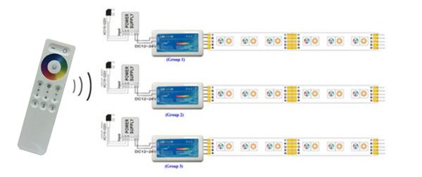 This 2.4G 3 zone Touch Remote RGBW controller is human touch type and key control type universal RGB controller.