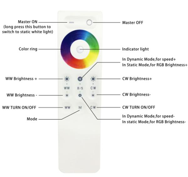 This 2.4G Touch Remote RGB+CCT controller is human touch type and key control type universal RGBWW controller.