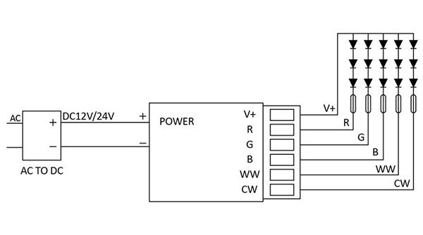 Adopting the most advance PWM control technology, can control all kinds of 5 channel (common anode) and 6 wires