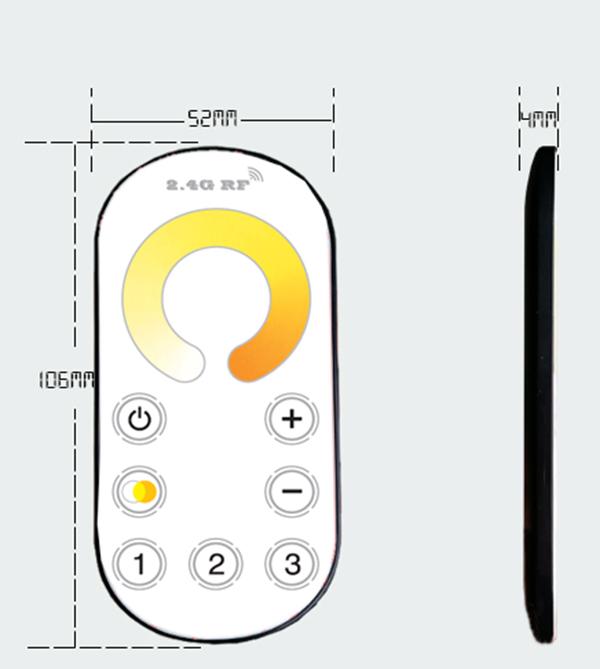 2.4G 3 Zone Touch Remote LED Color Temperature Controller can realize grading dimming. Adopting touch ring controlling. User can long-distance remote the light brightness to proper one according to actual demand. With 2.4G remote control frequency, remote control effect is stable, strong anti-jamming. Having more zones controlling function, can realize one to more controlling.