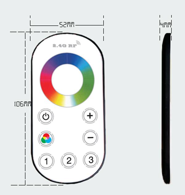 This 2.4G 3 zone Touch Remote RGB controller is human touch type and key control type universal RGB controller. Adopting the most advance PWM control technology, can control all kinds of 3 channel (common anode) and 4 wires LED lights. Such as LED module, led strip, led control box, led source,etc. This controller is easy to connected with wires and very simple to use. It is with synchronous indicating light and power off memory function. User can choose different changing mode, adjust the speed and brightness,turn on/off by the remote controlling. User can get flash effect, strobe effect, fade effect etc according to their demand .