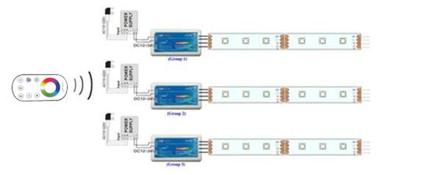 Remark:a remote control can operate 3 groups of controllers at the same time. each group of controllers can be composed of many controllers, such as 30 controller divided the 3 groups, then, each group control can remote 10 controllers, to achieve synchronously adjustable brightness effect.
