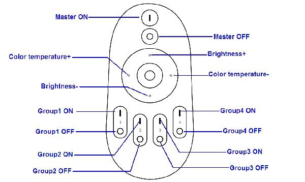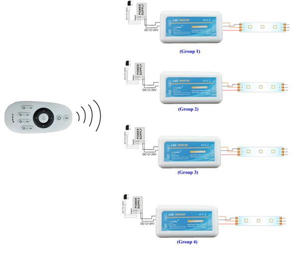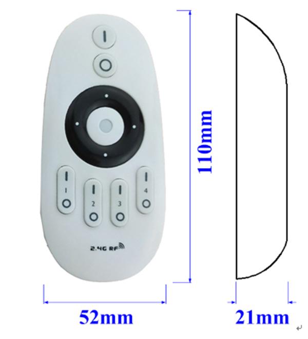 This 4 zone 2.4G RF color temperature controller adopt the press button RF wireless remote control, can adjust to change the lights color temperature according to the customer’s preference. 2.4G frequency make it more stable and more strong anti-jamming capability to use. Besides, one remote can control 4 groups of light independently, make it realize the one-to-many manipulation control.