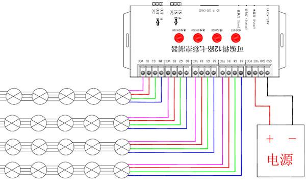 1、RGB controller,with 12 channels.Use the software LedEdit V2.4 to do programs.