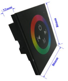 Touch panel controller is a new high-end controller which newly developed by our company. It adopts glass panel design, is beautiful and fashionable in appearance. It adopts high precision capacitance touch control chip, increases the touch sensitivity, reduces trigger which caused by mistake. It is used for controlling a variety of lamp whose source of light is LED. For instance, point source of light,flexible light strip, wall washer lamp, panel lights etc., it has many advantages such as convenient to connect, easy to use and others. According to the actual need of customers,it can carry out jumpy changing,gradual changing, strobo flash and other effects of change.
