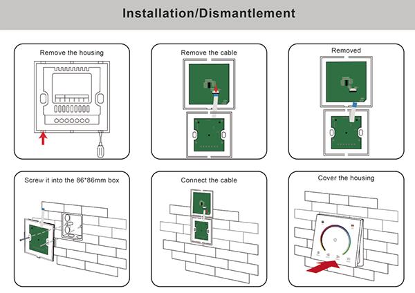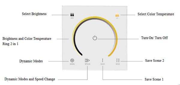 Touch panel dimmer controller is a new high-end controller which newly developed by our company. It adopts glass panel design with a beautiful and fashionable appearance. It adopts high precision capacitance touch control chip to increase the touch sensitivity and reduces mistake trigger. It is used for controlling a variety of lamp whose source of light is LED. For instance, point source of light,flexible light strip, wall washer lamp, panel lights etc., it has many advantages such as convenient to connect, easy to use and others. It also can realize cold white, warm white,pure white light Color-temperature and other effects of lighting change.