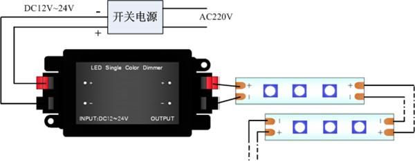 RF Single color dimmer is a controller that can adjust brightness infinitely and change to flash, its control mode is wireless control, you could adjust light to the appropriate lighting brightness in accordance with your actual need.