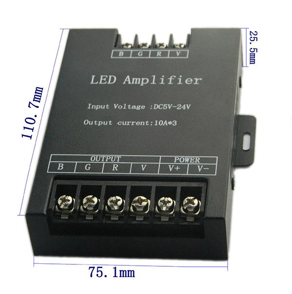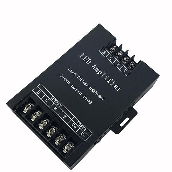 This RGB amplifier is suitable for all kinds of constant voltage led RGB controller. It can enlarge the led controller signal through the RGB to receive the PWM (pulse width modulation),and output the signal to the load ,then it can make the same effect with the controller. When add each additional amplifier, can connect and controlled twice more LED lights. Theoretically, one controller can connector with thousands of this RGB amplifier, and can make the same effect.
