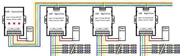 Connect the input and output wire in sequence according to the specification one the label of the amplifier, make sure that no short circuit phenomenon, then connect the amplifier to the DC5V-24V power supply , and used with the led light , the wiring diagram are as follows: