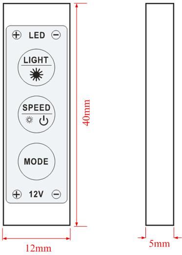 This controller is with 8 kinds of monochrome dynamic model,including flash blasting, breathing, getting brighter and darker , strobe, flicker and other models.With wide range of speed level( total have 10 level of speed). At the same time, this controller have the characteristics of small volume, easy to carry,etc, its popular amount the many markets.