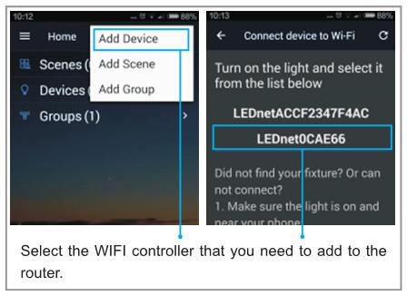 Note: if you want to add controller WIFI to the router network in the APP interface, you should connect the controller signal in network connection first.