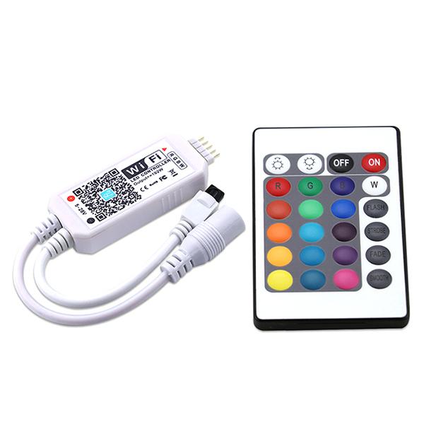 This mini IR 24-key WIFI controller is a new way to use your Smart lighting system。As a member of the series, it is manipulated by connect to wireless router. This is designed to make using your smart lighting system much easier and more convenient. No matter where you are, when it is, you can always control them. Functions like 16 million colors, 20 dynamic modes, music, and picture color recognize.