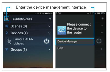 The second: choose to connect to the router, write the router password , mobile phone choose the to connect the router network signal, open the Magic Home Pro APP, enter the software APP control interface