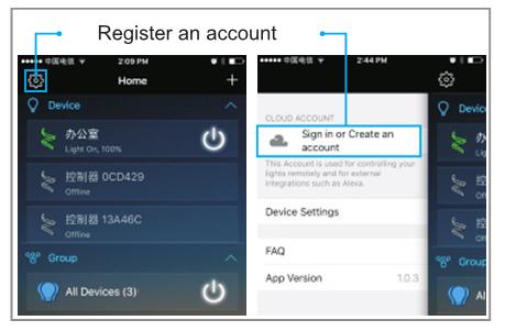 When registering the account, please connect the controller's WIFI signal to the