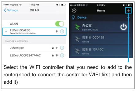 Note: if you want to add controller WIFI to the router network in the APP interface, you should connect the controller signal in network connection first.
