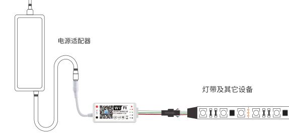 controller circuit and power supply is normal connection. 1.Single connection: do not need to register account,open cell phone WIFI network,find“LED net**”signal and connect.