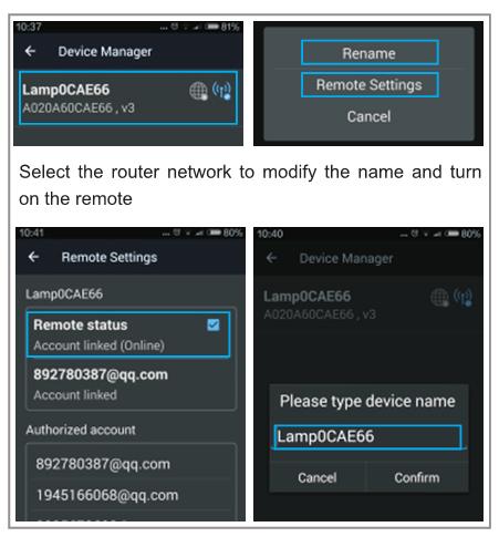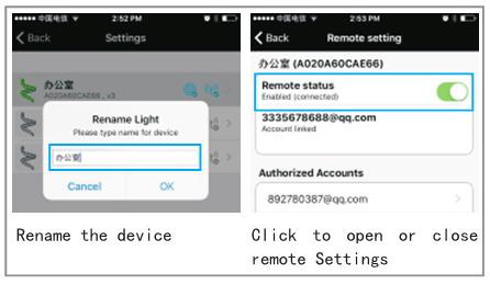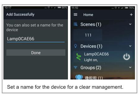 Make sure there is at least one smart lightin device list, and enable your lights for remotecontrol. On "Home" page,long press lighttorename.