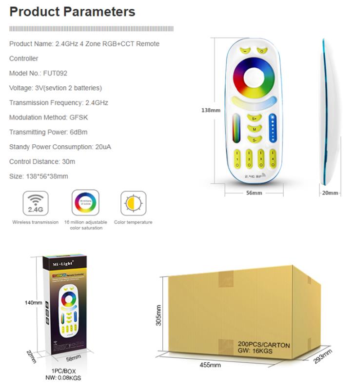 Product Name: 2.4GHz 4 Zone RGB+CCT Remote Controller