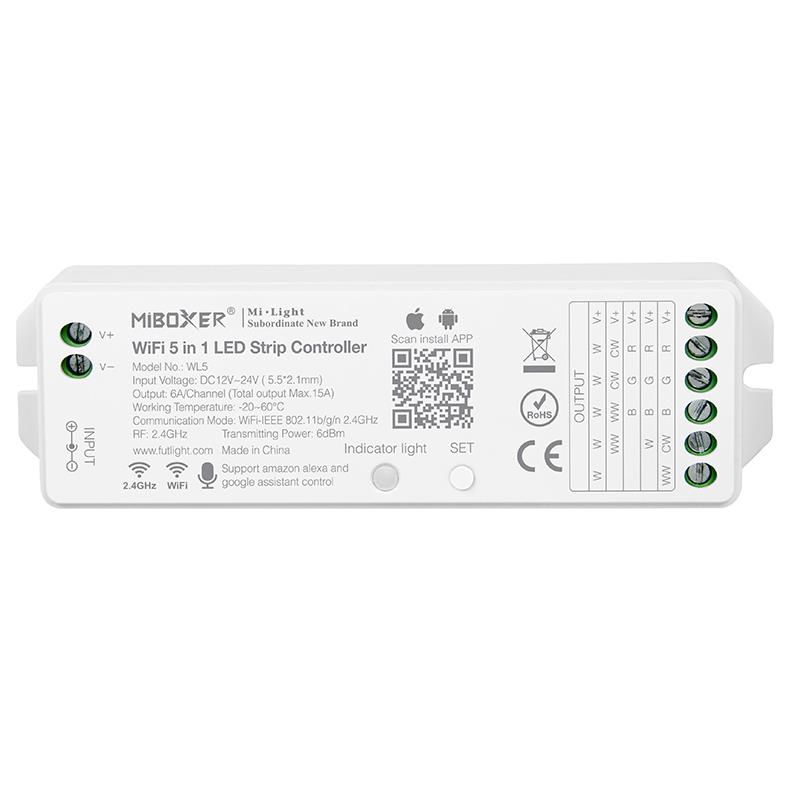 5 in 1 wifi led strip controller compatible with Alexa ,Google Home and RF remote Working with APP MiBoxer
