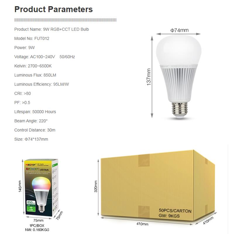 Product Name: 9W RGB+CCT LED Bulb