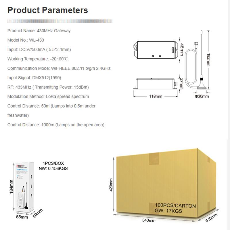 RF: 433MHz ( Transmitting Power: 15dBm)